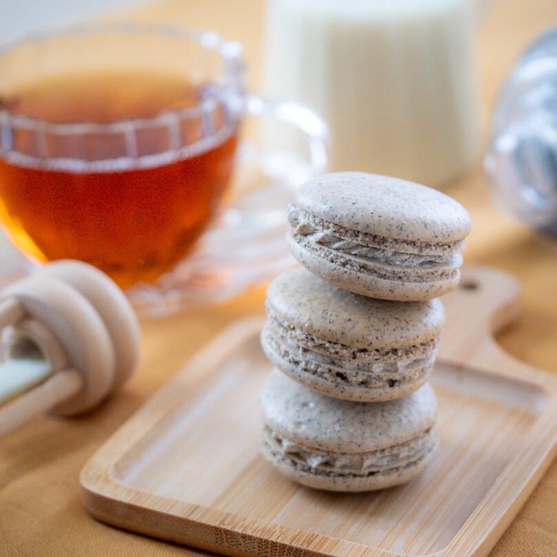 ミルクティーと相性の良いアッサム・ケニア・ウバを使用した生地に、ケニアの粉末茶葉を混ぜ込んだ紅茶のバタークリームとミルク風味のバタークリームをサンドすることで、ミルクティーを表現したマカロンです。